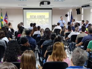 Reunião de integração de novos servidores, no auditório da Prefeitura. É muito importante receber os novos colaboradores e enfatizar sobre a dedicação para o bom atendimento e à prestação de serviços à população.