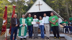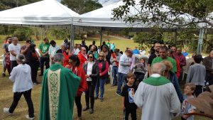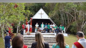 Foi emocionante a Missa Campal celebrada, hoje, pelo bispo diocesano Dom Pedro Stringhini, no Parque Natural Municipal Chiquinho Veríssimo (Serra do Itapeti).