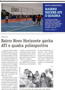 NotíciaO prefeito Marcus Melo (PSDB) inaugurou no último sábado, uma Academia da Terceira Idade (ATI) do Novo Horizonte junto com uma quadra poliesportiva