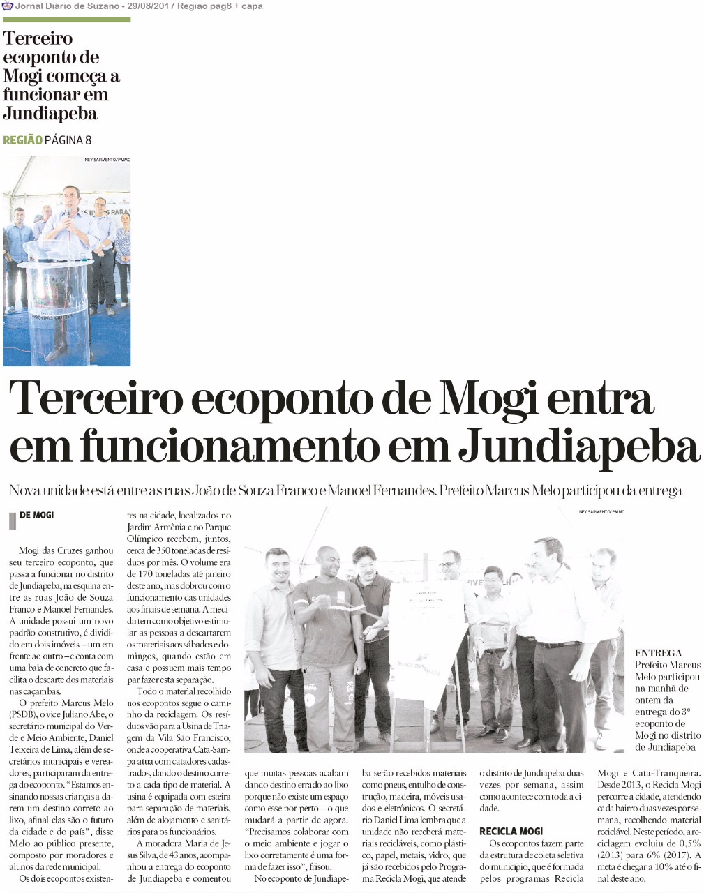 Prefeito e Juliano inauguram Ecoponto de Jundiapeba.