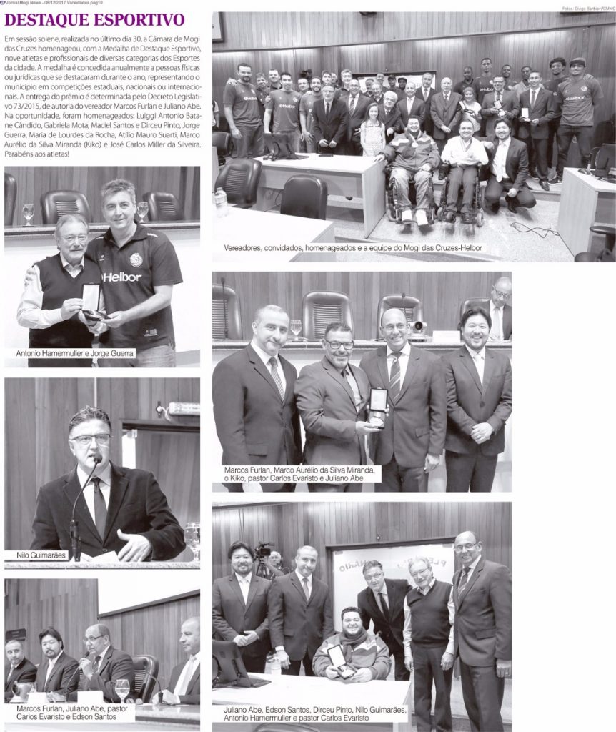 Atletas e profissionais de esporte de Mogi recebem homenagem como resultado de um trabalho de Juliano enquanto vereador.