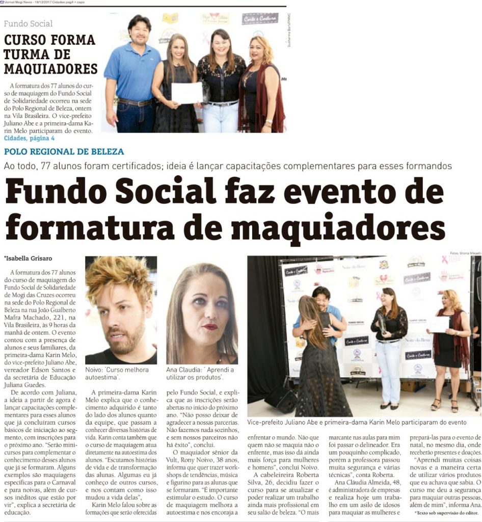 Juliano e primeira-dama Karin Melo participam da formatura de 77 alunos do curso de Maquiagem, fornecido pelo Fundo Social de Solidariedade.
