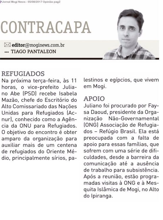 Juliano recebe representante da ONU para tratar da situação de refugiados do Oriente Médio, que vivem na Cidade.