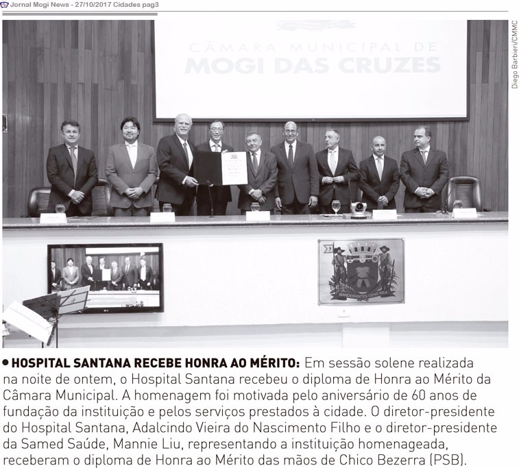 Representando o prefeito, Juliano participa da homenagem prestada pela Câmara Municipal ao Hospital Santana.