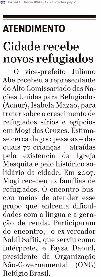 Juliano pede ajuda da ONU para amparar os cerca de 300 refugiados do Oriente Médio, que vivem na Cidade.