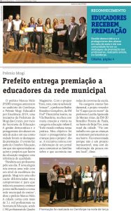 O prefeito Marcus Melo entregou na noite desta terça-feira (15/10) no auditório do Cemforpe, o Prêmio Mogi: Educador por Excelência 2019, uma iniciativa da Prefeitura de Mogi das Cruzes, por meio da Secretaria de Educação. A gestão democrática e o protagonismo dos alunos em sala de aula e em sua comunidade foram os destaques da premiação. O evento faz parte do Outubro Educação, em que são apresentadas as ações e projetos que fazem da educação mogiana uma referência de qualidade.