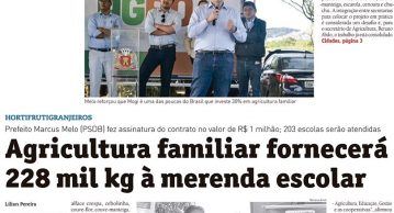 Agricultura familiar fornecerá 228 mil kg à merenda escolar